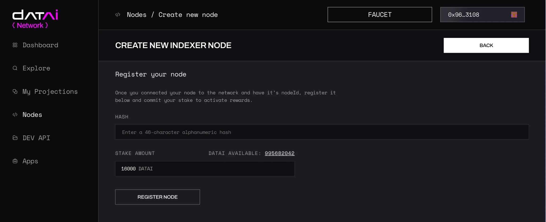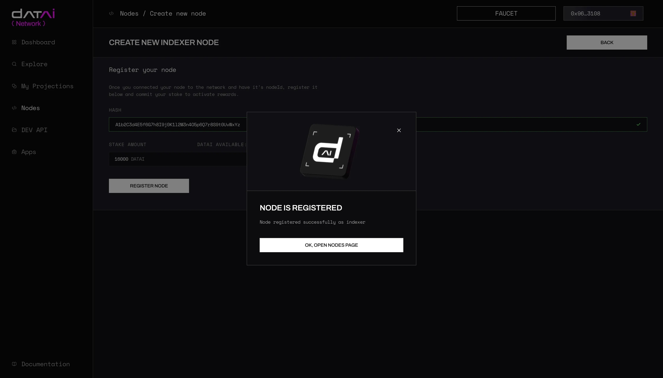 nodeId.Stake Amount — this is the amount of DATAI tokens you’re committing to activate your node. The amount is fixed.